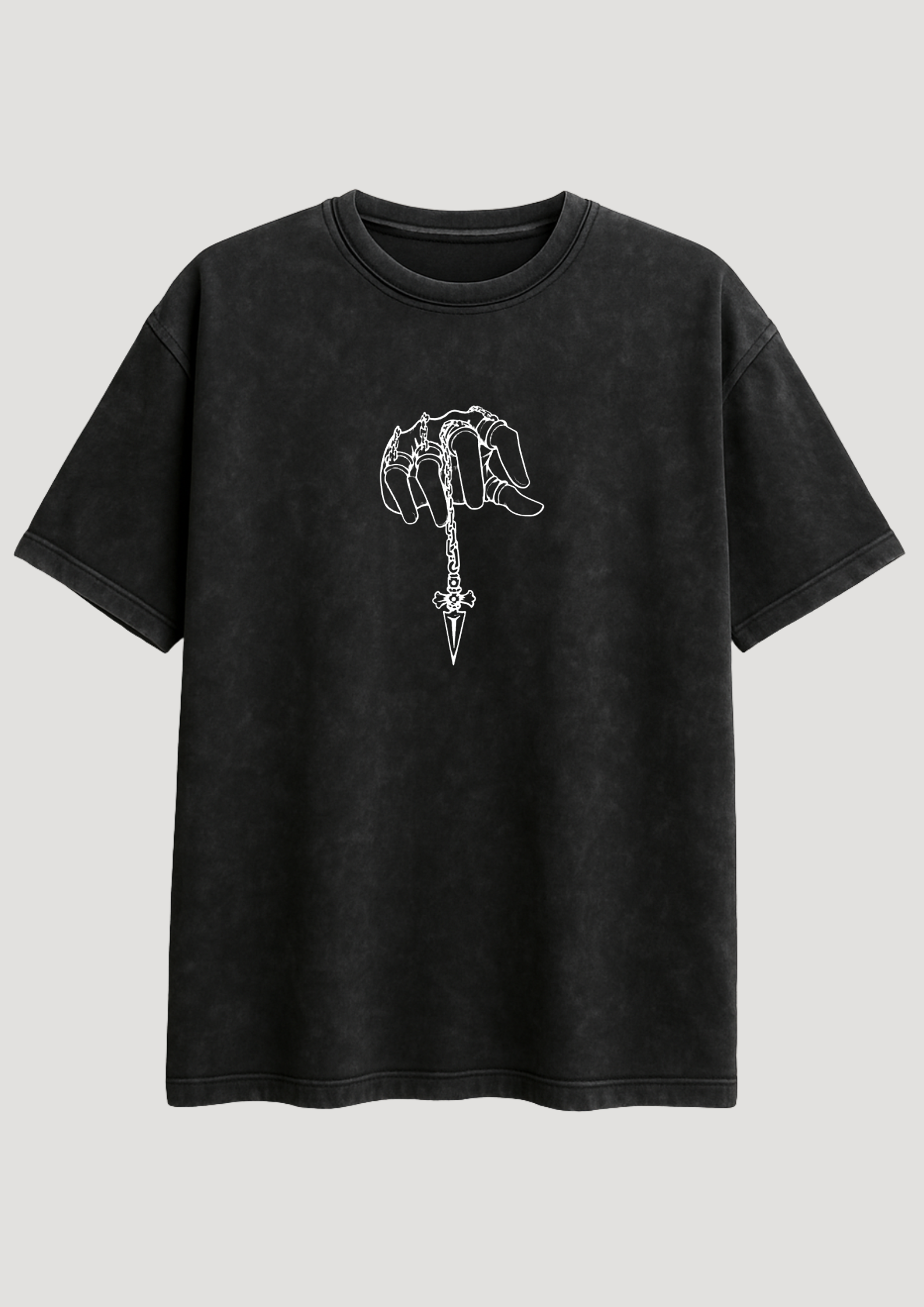 Make a bold statement with the Sacred Chains Oversized Acid Wash T-shirt. Crafted from 240 GSM heavyweight cotton, this tee delivers both premium comfort and a rugged streetwear vibe. Featuring a striking red anatomical heart wrapped in silver chains and pierced by a dagger, surrounded by a mystical halo, this design embodies power and rebellion. The acid-wash finish adds a vintage, worn-in look, making it a must-have for any gothic-inspired wardrobe.