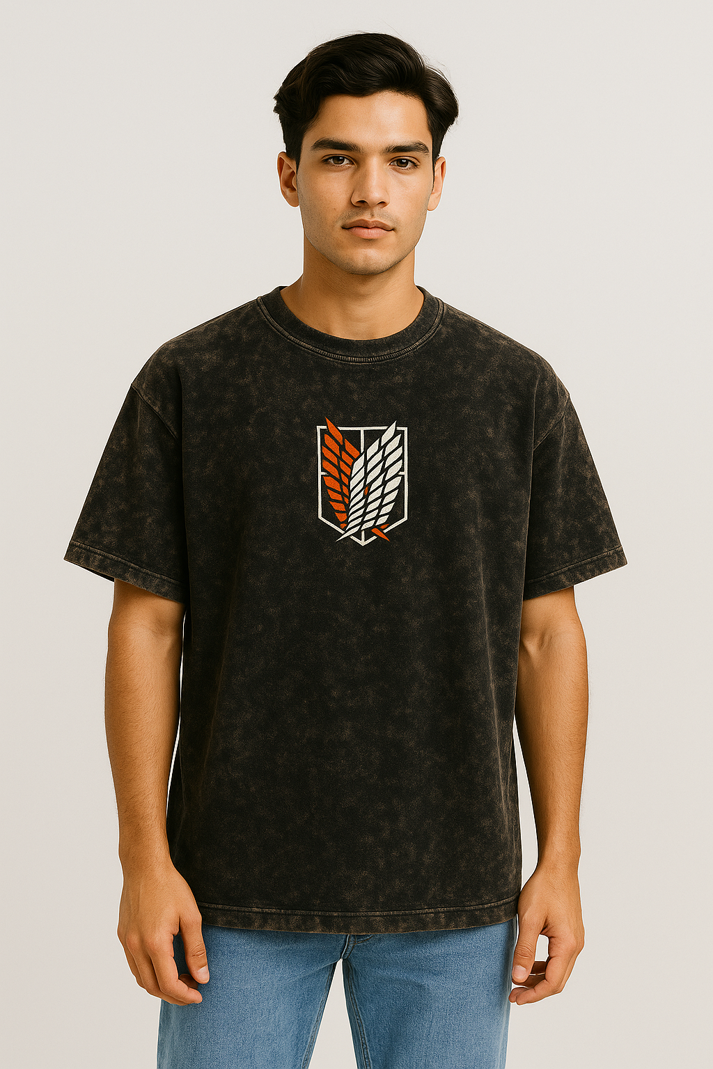 Command presence with the Silent Shadow – Levi Ackerman Oversized Tee. Crafted from heavy-duty 240 GSM cotton and finished with a premium acid wash, this shirt embodies the quiet strength of humanity’s mightiest soldier. The oversized fit ensures comfort and a streetwear edge, while the bold graphic pays tribute to Levi’s relentless precision and calm fury. Whether you're scouting the city or keeping things lowkey, let Levi's silent resolve speak for you.